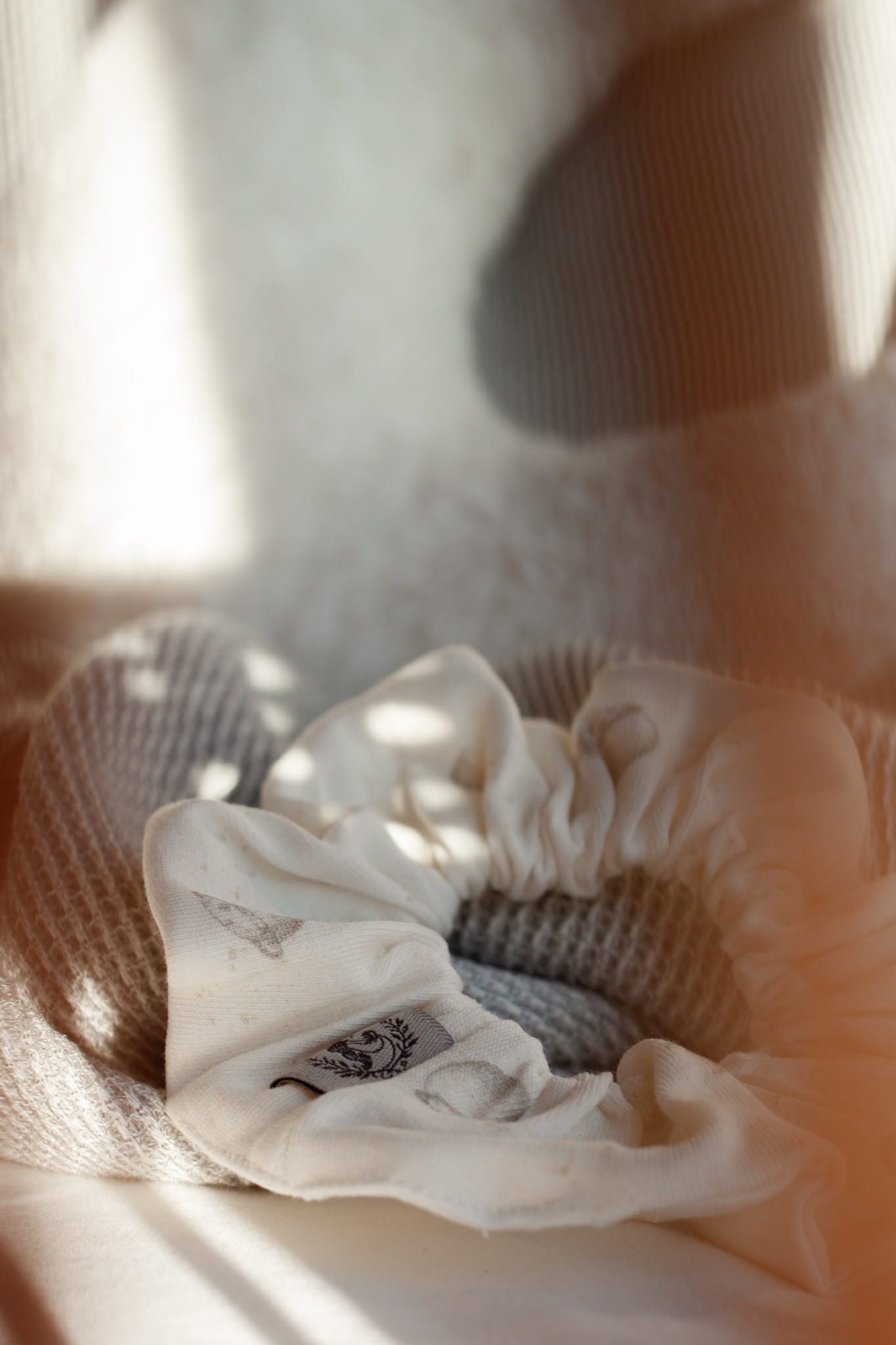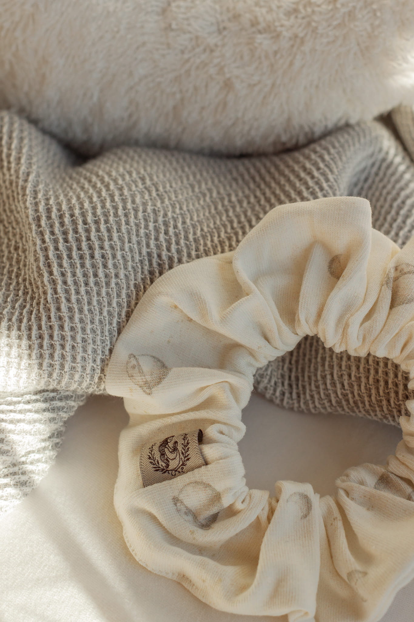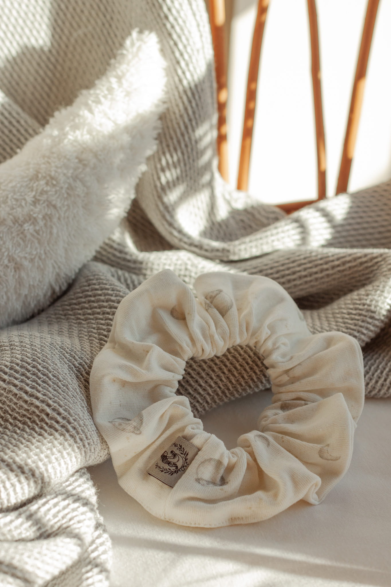 Szeroka, miękka gumka do włosów typu scrunchie we wzór gwiazdki, idealna jako komplet z koszulą nocną ciążową i do karmienia z kolekcji Niebiańskie Owieczki.