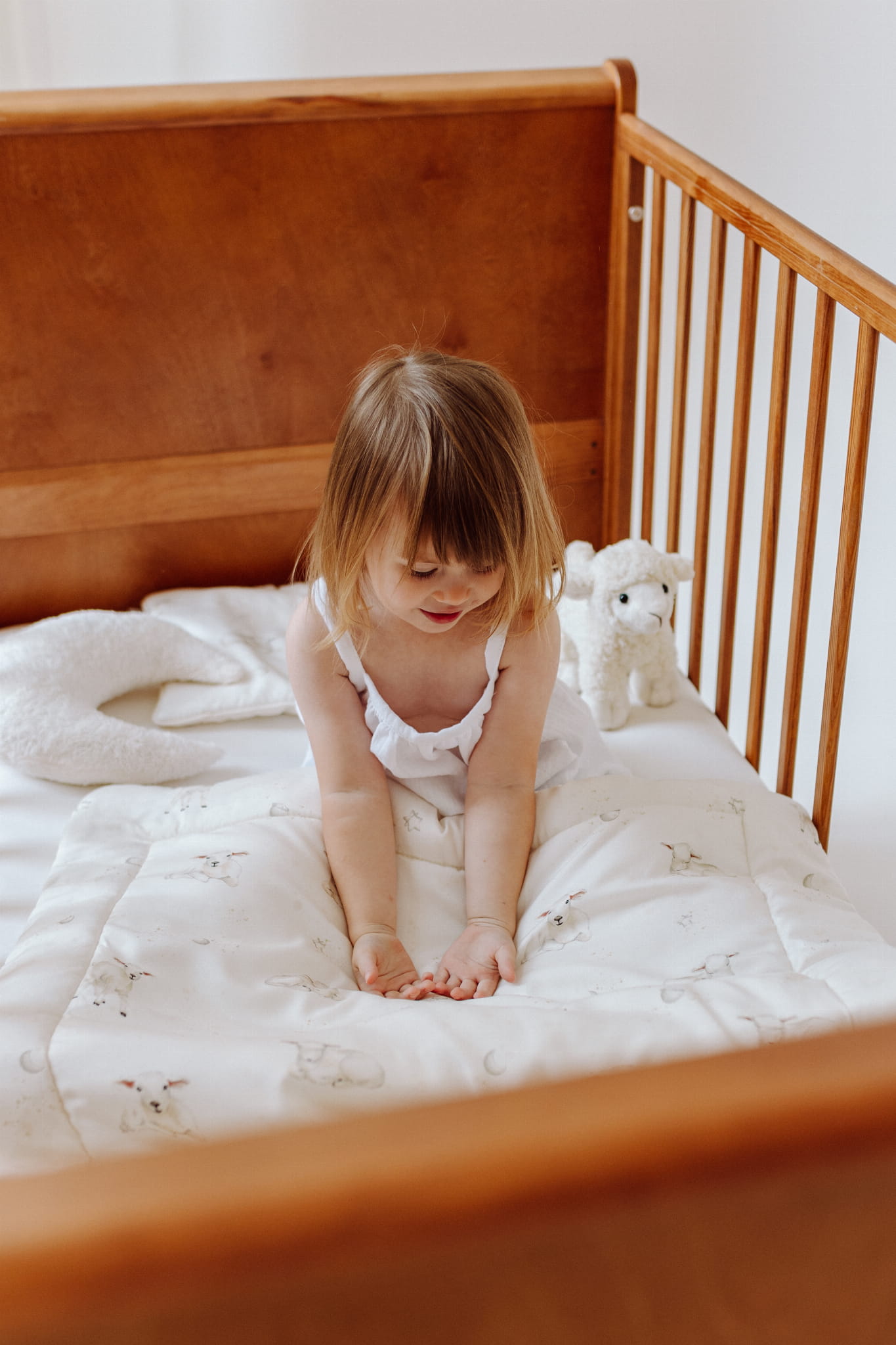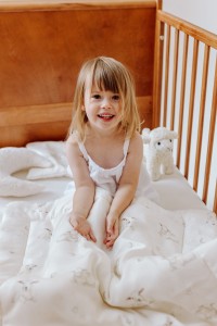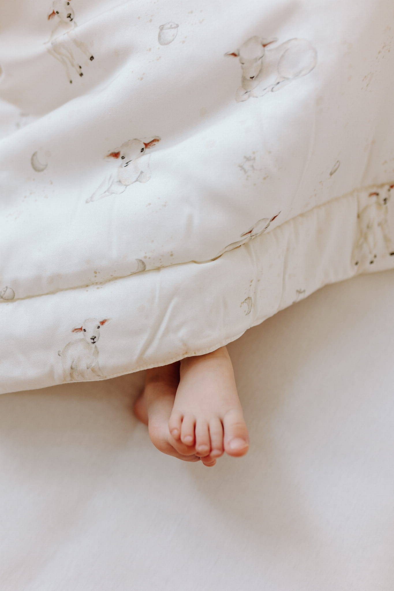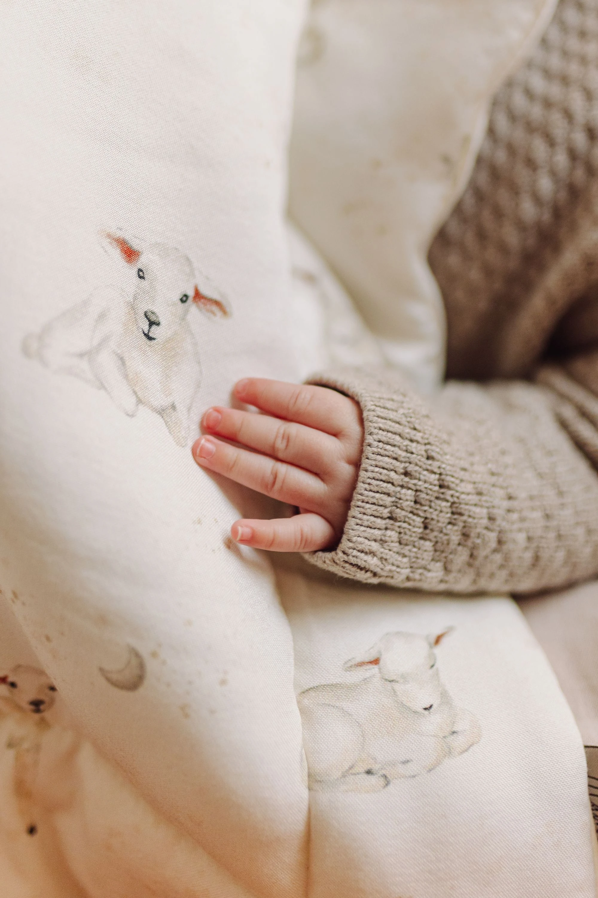 Kołderka zdobiona jest autorskim wzorem ręcznie malowanych owieczek na tle księżycowego nieba w subtelnej kolorystyce. Miękka i delikatna tkanina bambusowa w połączeniu z niepowtarzalnym designem, zapewnią Twojemu dziecku komfort wypoczynku oraz słodkie i spokojne sny.