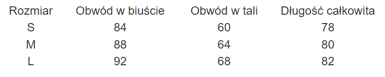 Ważne: Podana długość całkowita nie obejmuje regulowanych ramiączek - należy doliczyć ok. 10 cm do całkowitej długości koszuli, w zależności od ustawienia ramiączek.