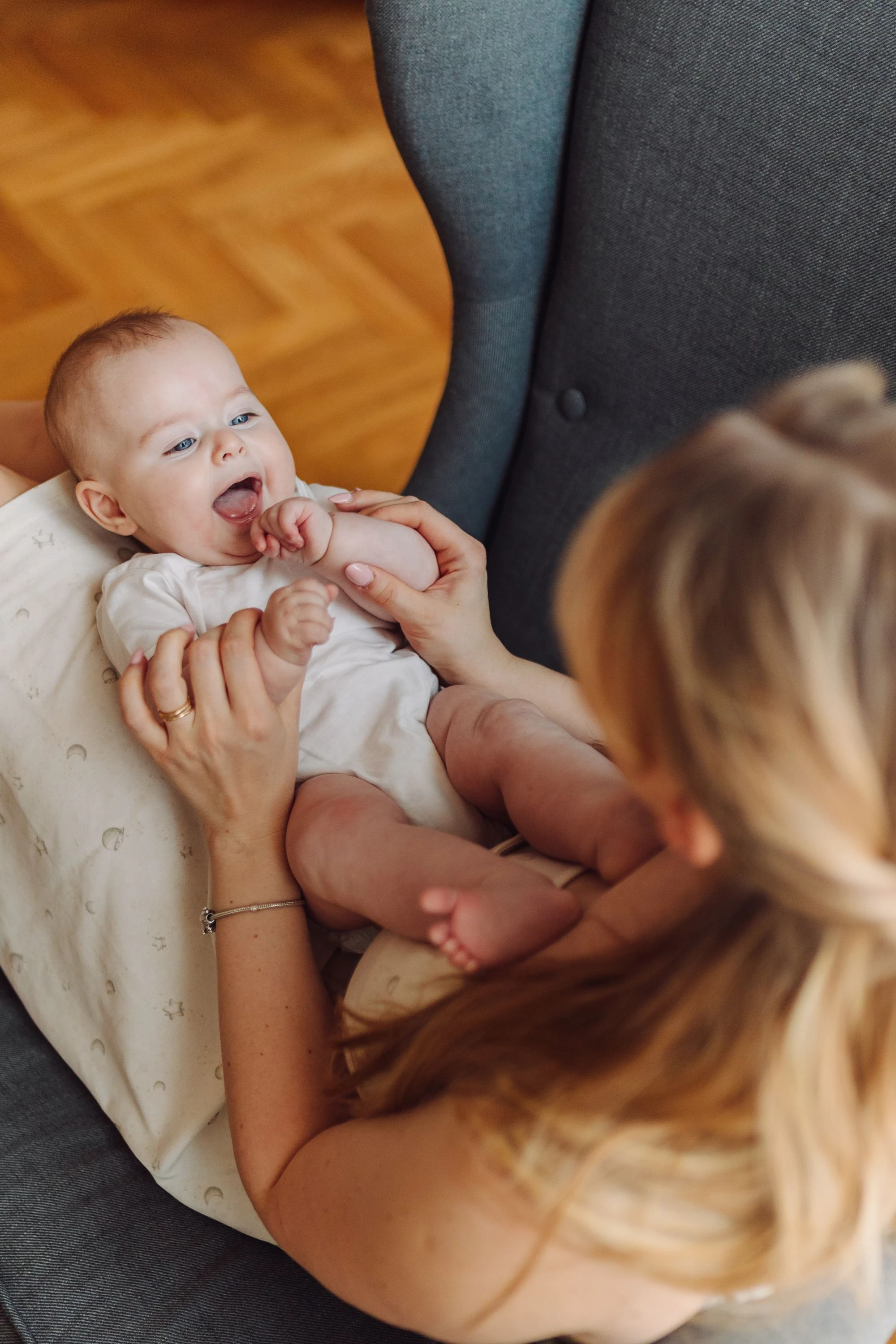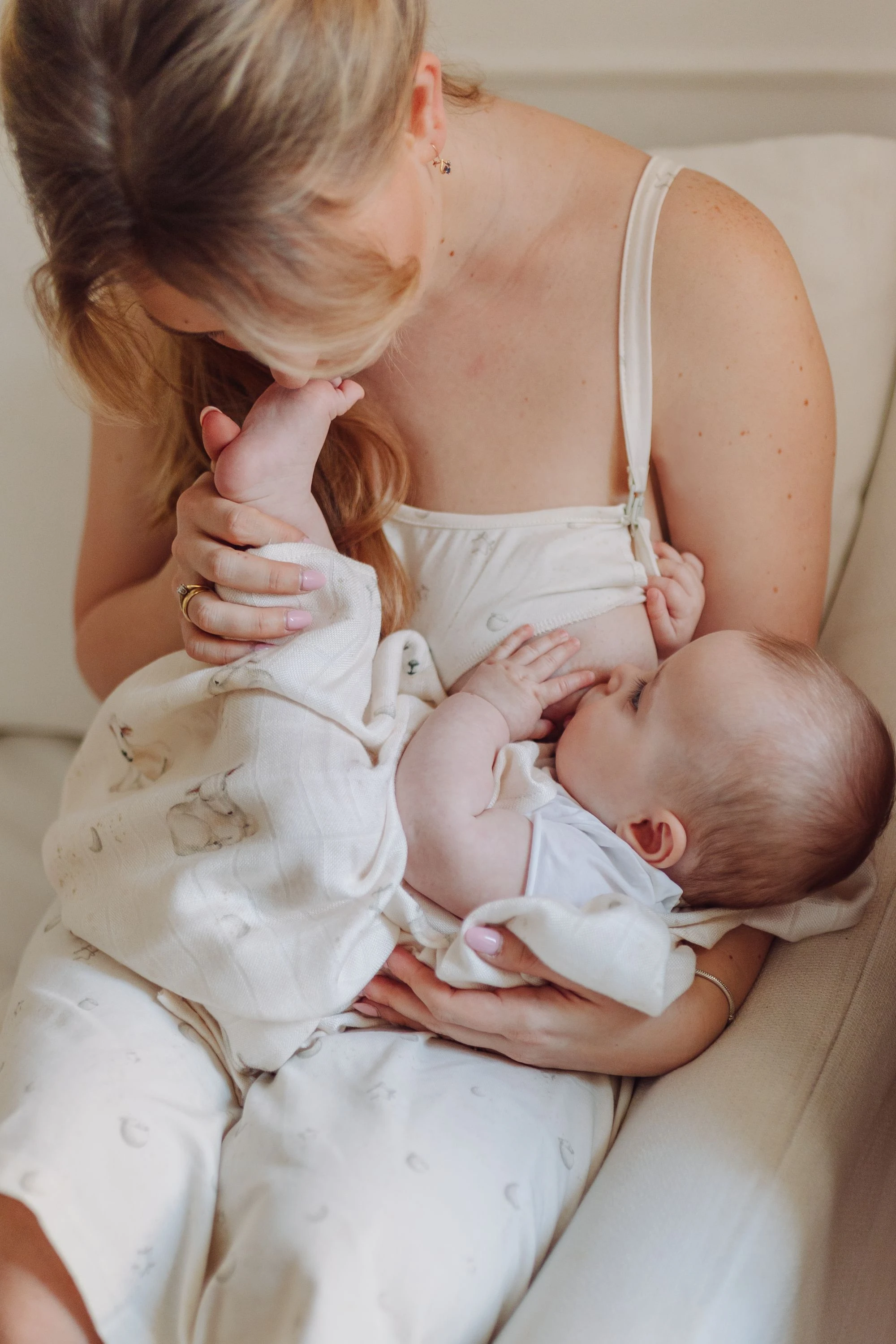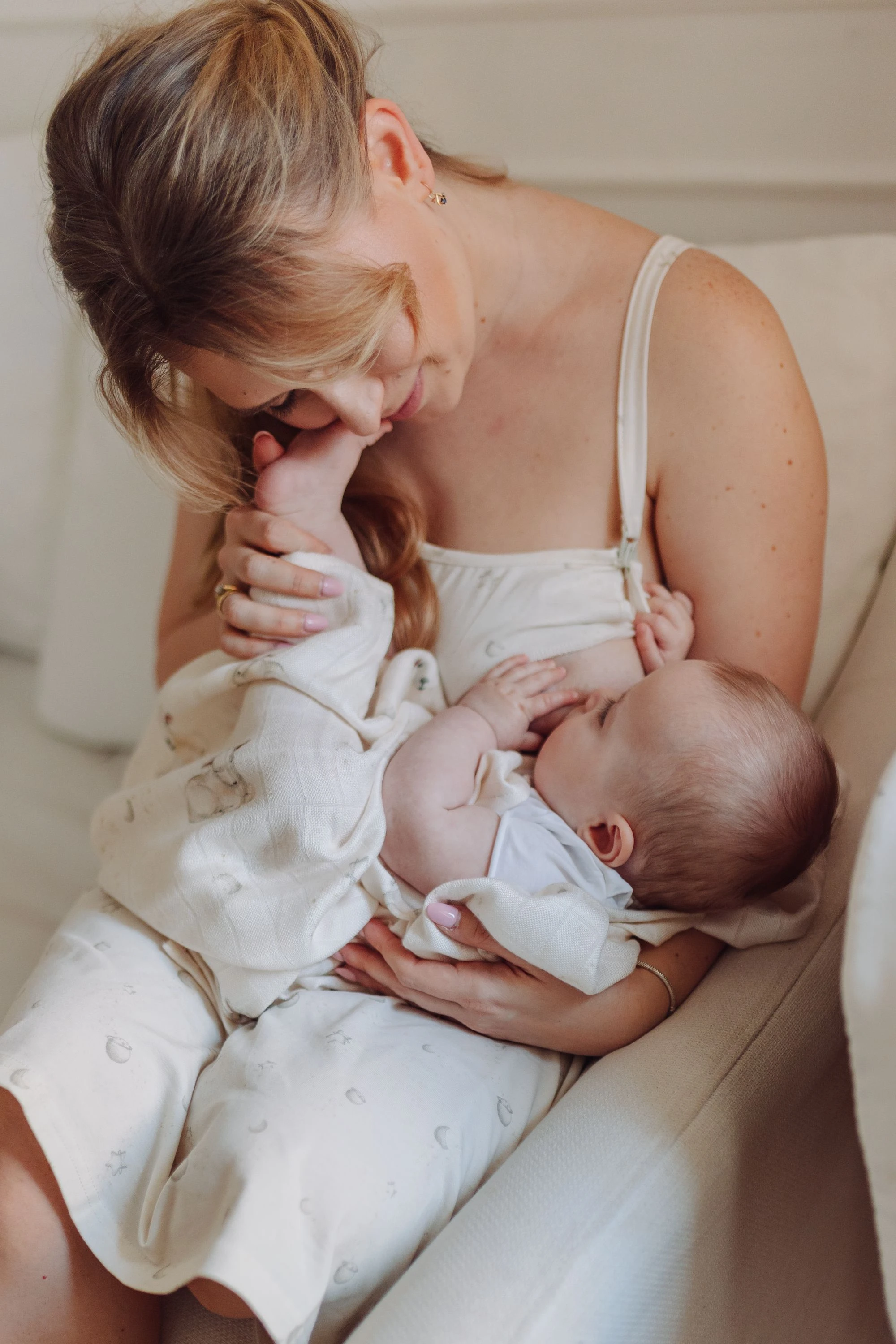Przedstawiamy koszulę nocną do karmienia zdobioną subtelnym, ręcznie malowanym wzorem gwiazdek i księżyców z kolekcji dedykowanej mamie i dziecku Niebiańskie Owieczki, zaprojektowanej z myślą, aby podkreślić wyjątkową więź, jaka ich łączy.