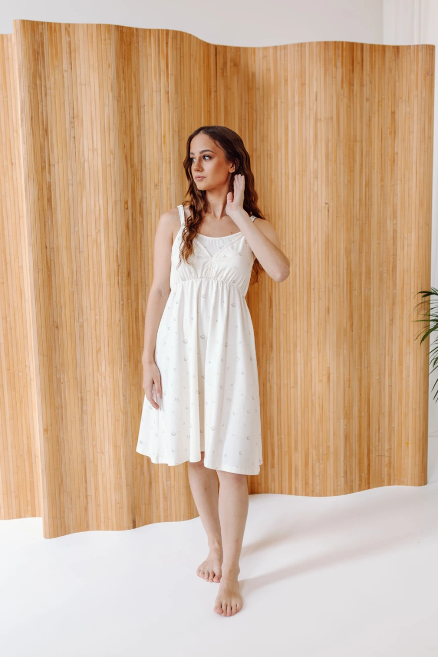 Koszula nocna ciążowa i do karmienia Gwiazdki - ecru