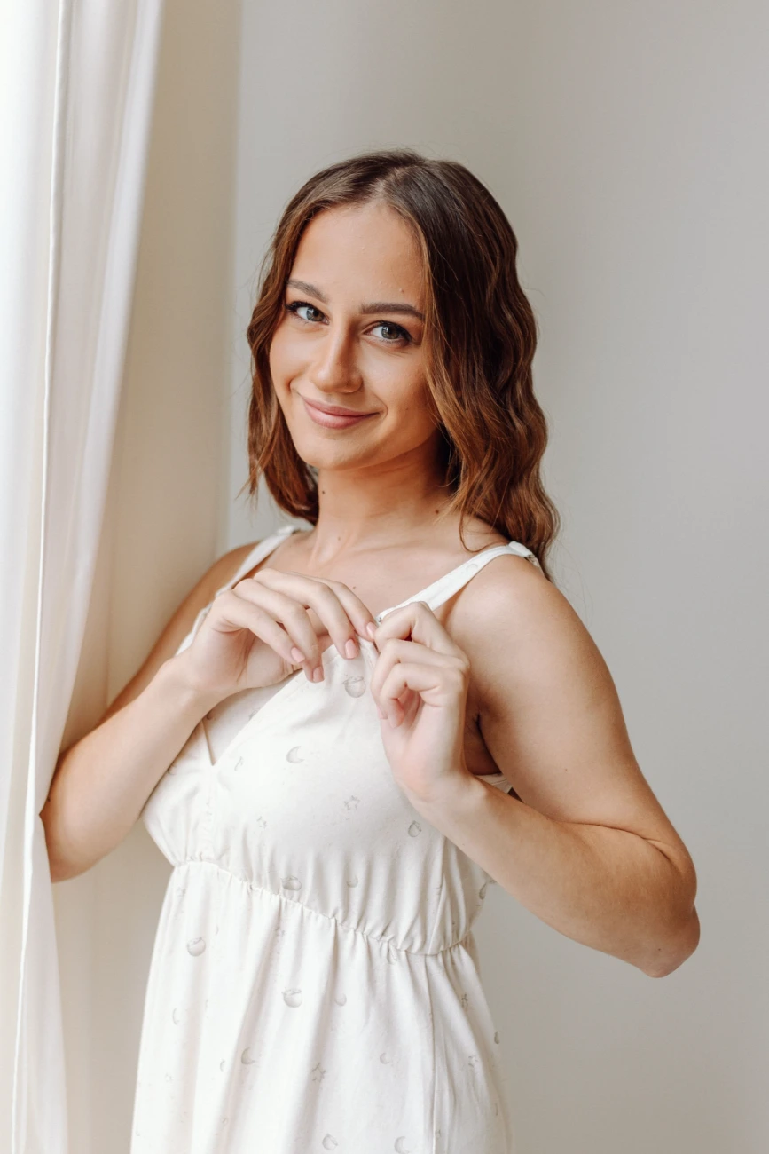 Koszula wykonana w 100% w Polsce, z wysokiej jakości dzianiny. Jest niezwykle miękka i idealnie dopasowuje się do zmieniającego się ciała w okresie ciąży i karmienia piersią. Posiada regulowane, odpinane ramiączka oraz łatwy dostęp do piersi, dzięki czemu idealnie sprawdzi się do karmienia maluszka. Z łatwością możesz umieścić w niej także wkładki laktacyjne. Koszula została zaprojektowana tak, aby wkładki nie wysuwały się, zapewniając najwyższy komfort i dodatkowe wsparcie mamom karmiącym w ich codziennych wyzwaniach.