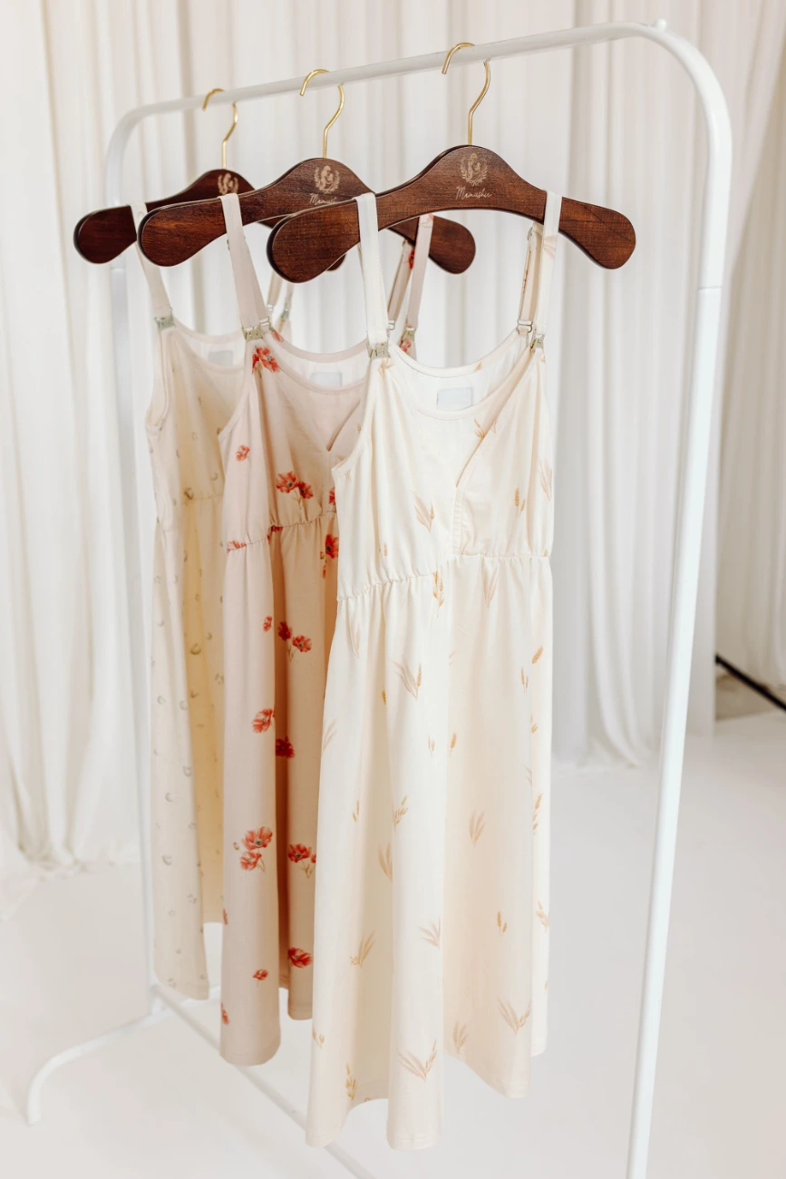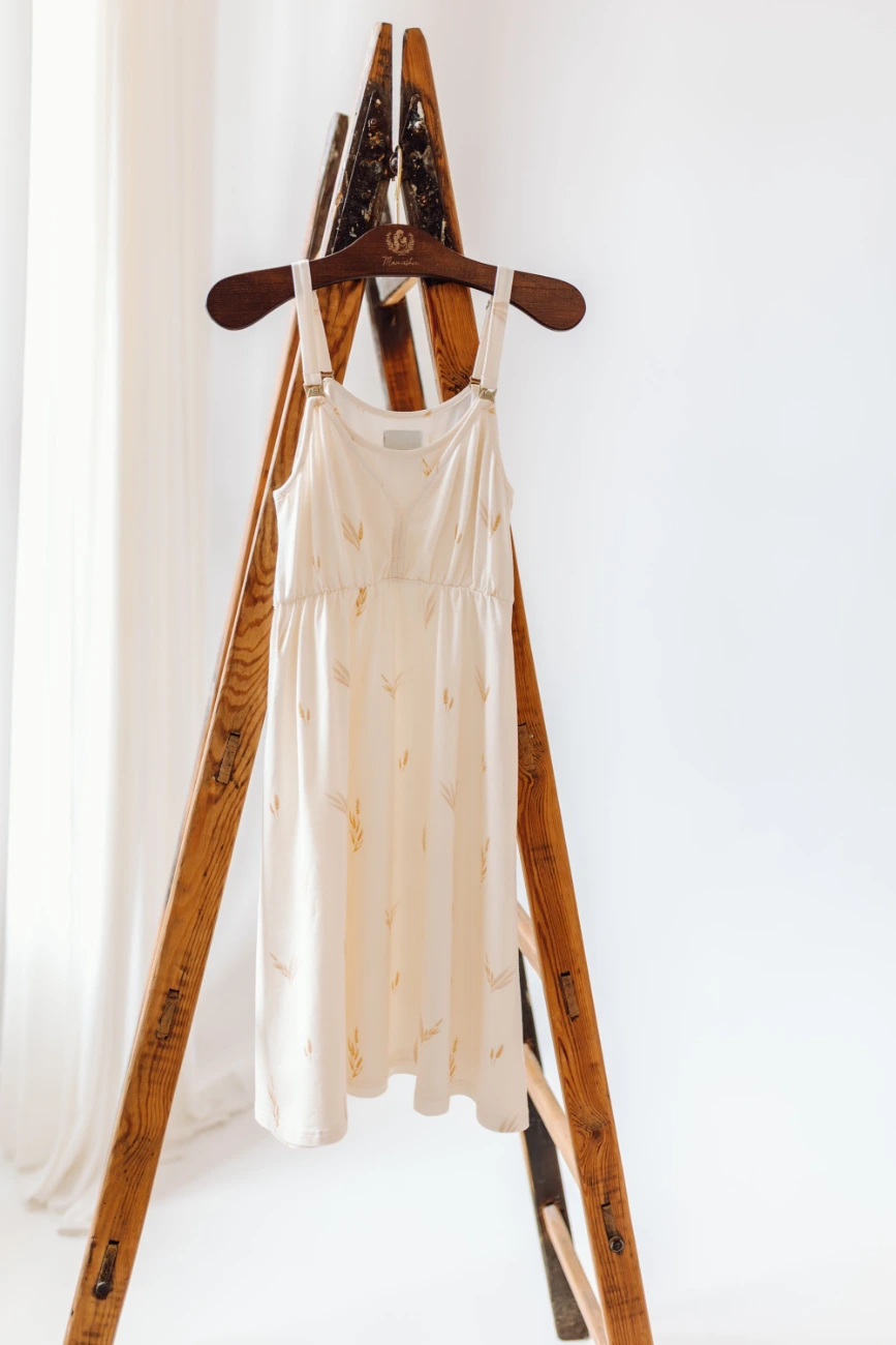 Odkryj nowy komfort karmienia i poczuj się piękna z naszą koszulą nocną dla kobiet w ciąży i mam karmiących w minimalistyczny wzór Kłosy!