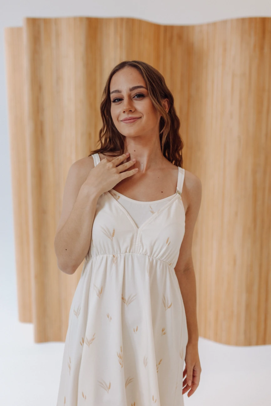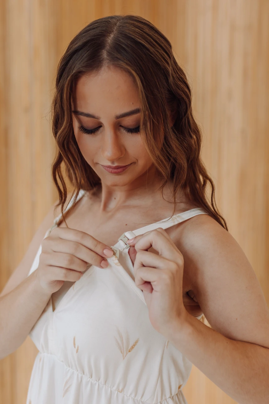 Koszula nocna ciążowa i do karmienia Kłosy - ecru
