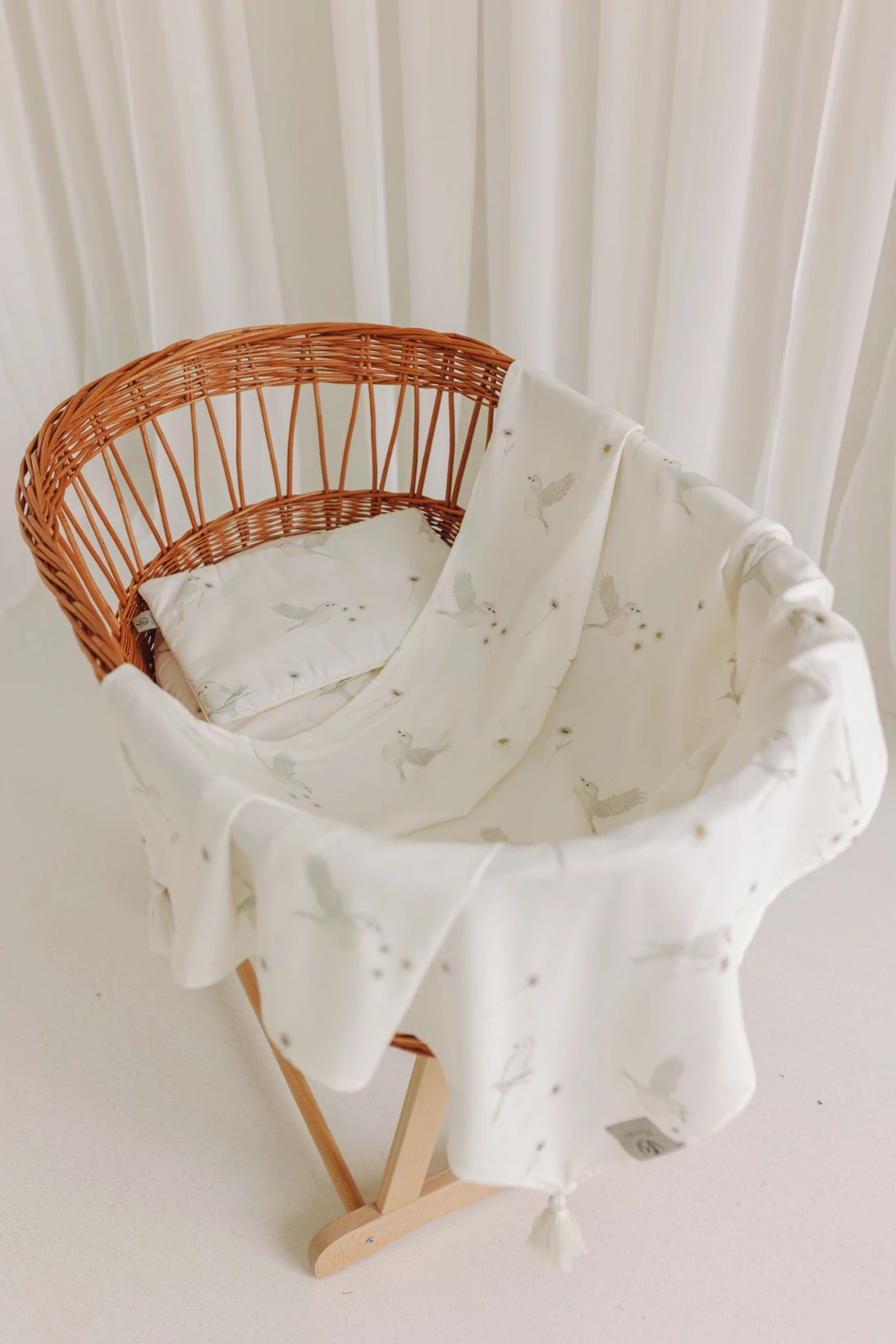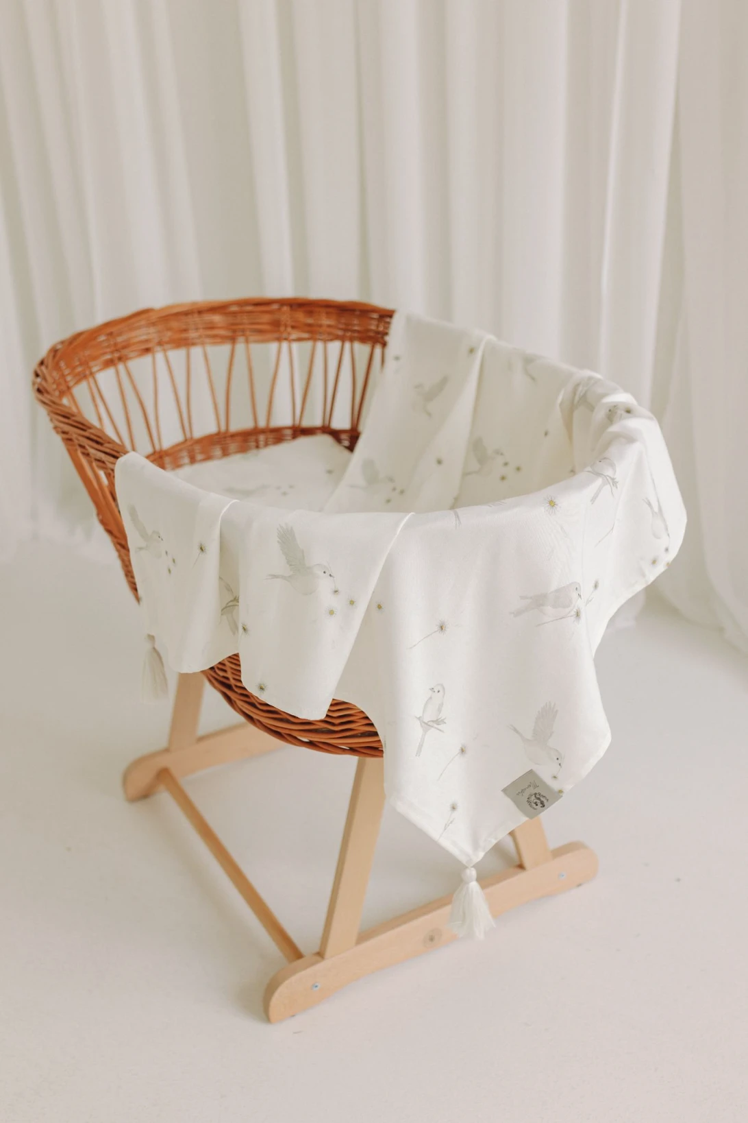Otulacz zdobiony jest pięknym, autorskim wzorem ręcznie malowanych ptaszków i polnych stokrotek. Miękka i delikatna tkanina bambusowa w połączeniu z niepowtarzalnym designem zapewnią Twojemu dziecku słodkie i spokojne sny.