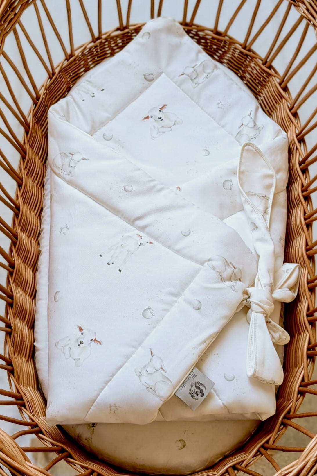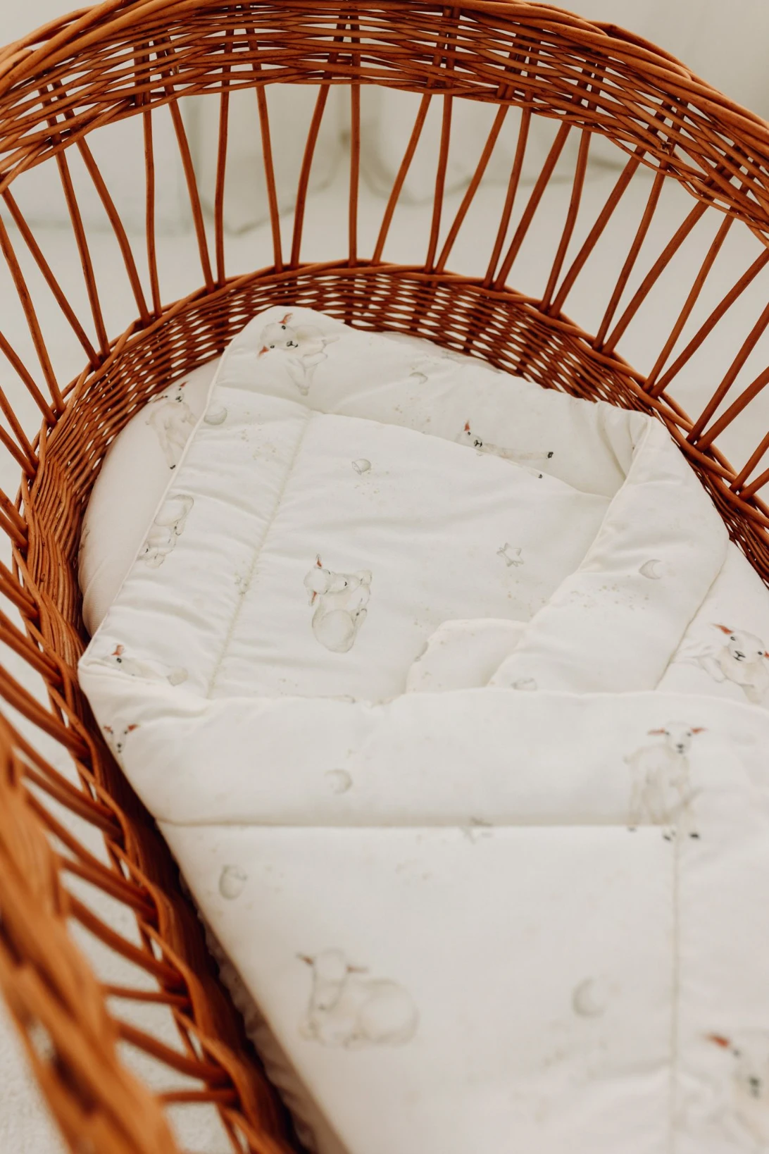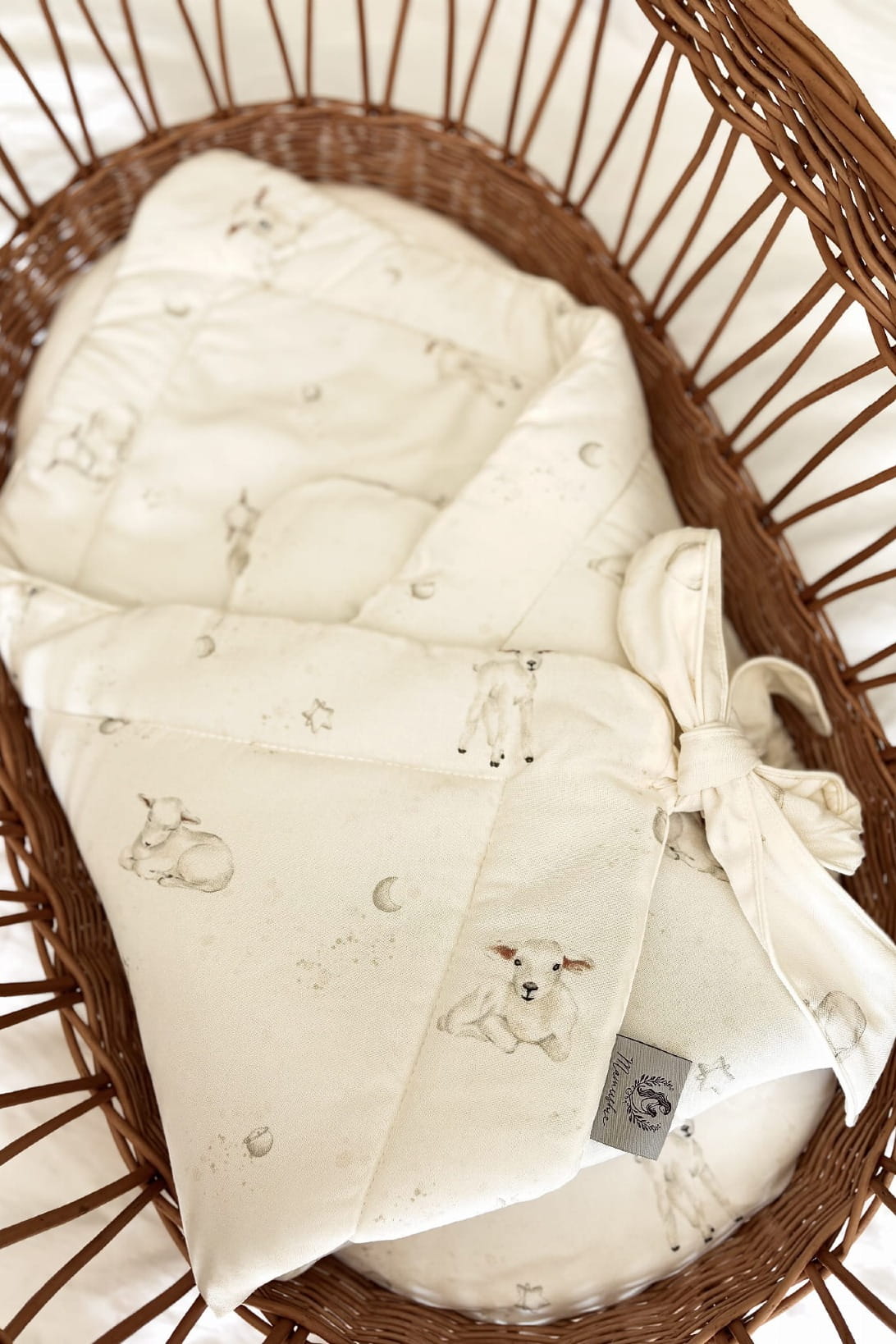 Rożek zdobiony jest autorskim wzorem ręcznie malowanych owieczek na tle gwiaździstego nieba. Miękka i delikatna tkanina bambusowa w połączeniu z niepowtarzalnym designem, zapewnią Twojemu dziecku komfort wypoczynku oraz słodkie i spokojne sny.