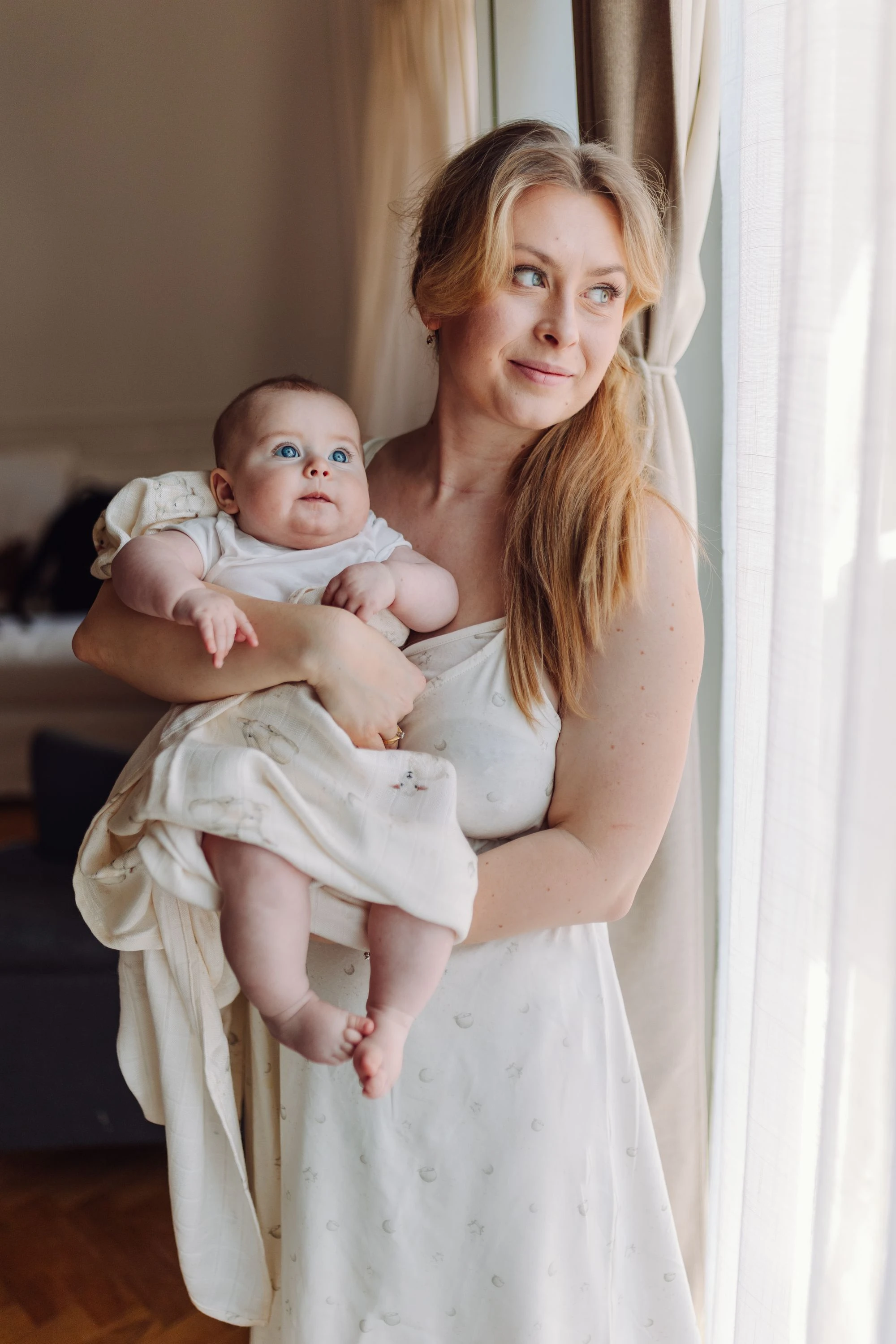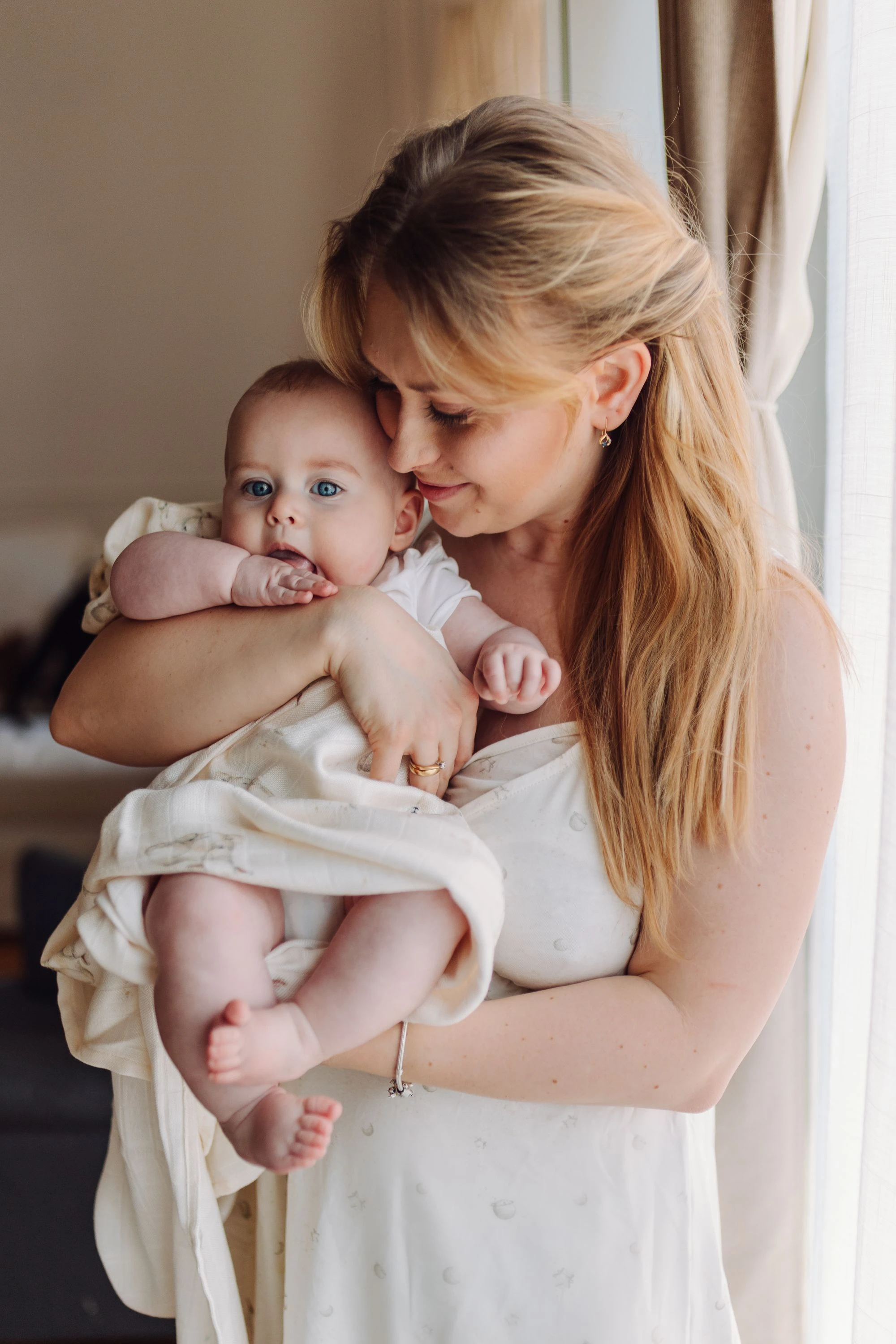 Zestaw dla mamy i dziecka: koszula nocna do karmienia Gwiazdki [rozmiar S] i muślinowy otulacz bambusowy 120/120 - Niebiańskie Owieczki
