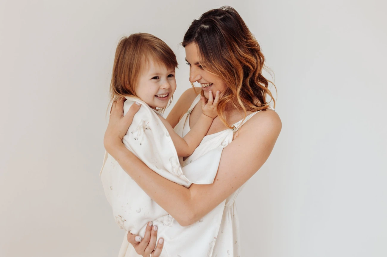 Zestaw dla mamy i dziecka: koszula nocna do karmienia Gwiazdki [rozmiar S] i otulacz bambusowy 75/75 - Niebiańskie Owieczki