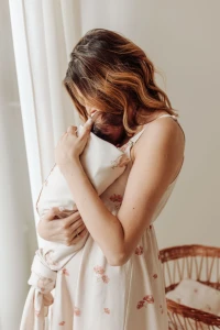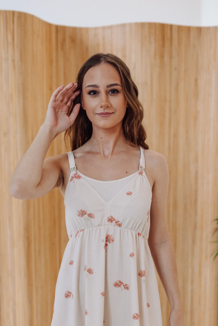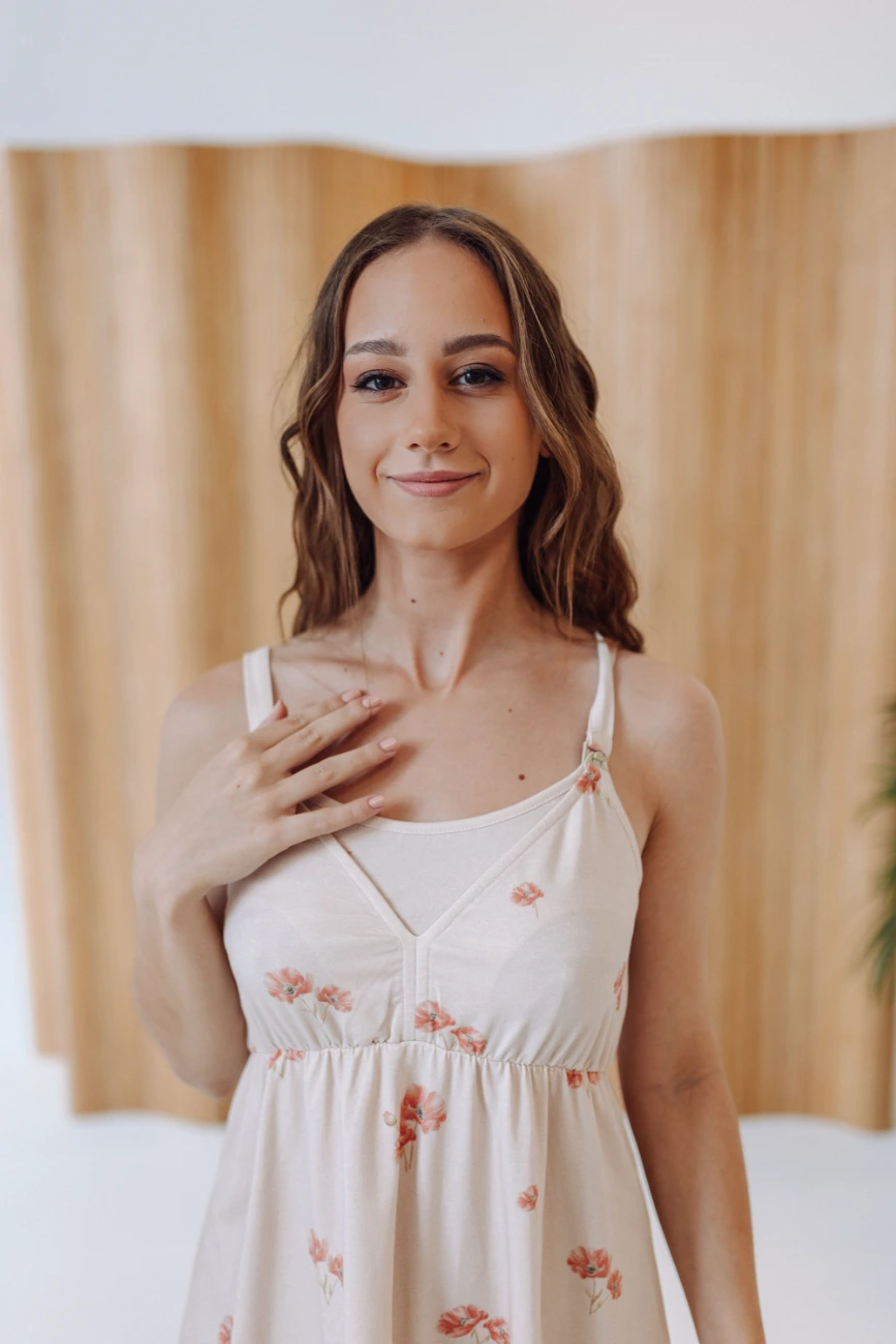 Zestaw dla mamy i dziecka: koszula nocna do karmienia [rozmiar M] i muślinowy otulacz bambusowy 120/120 - Maki