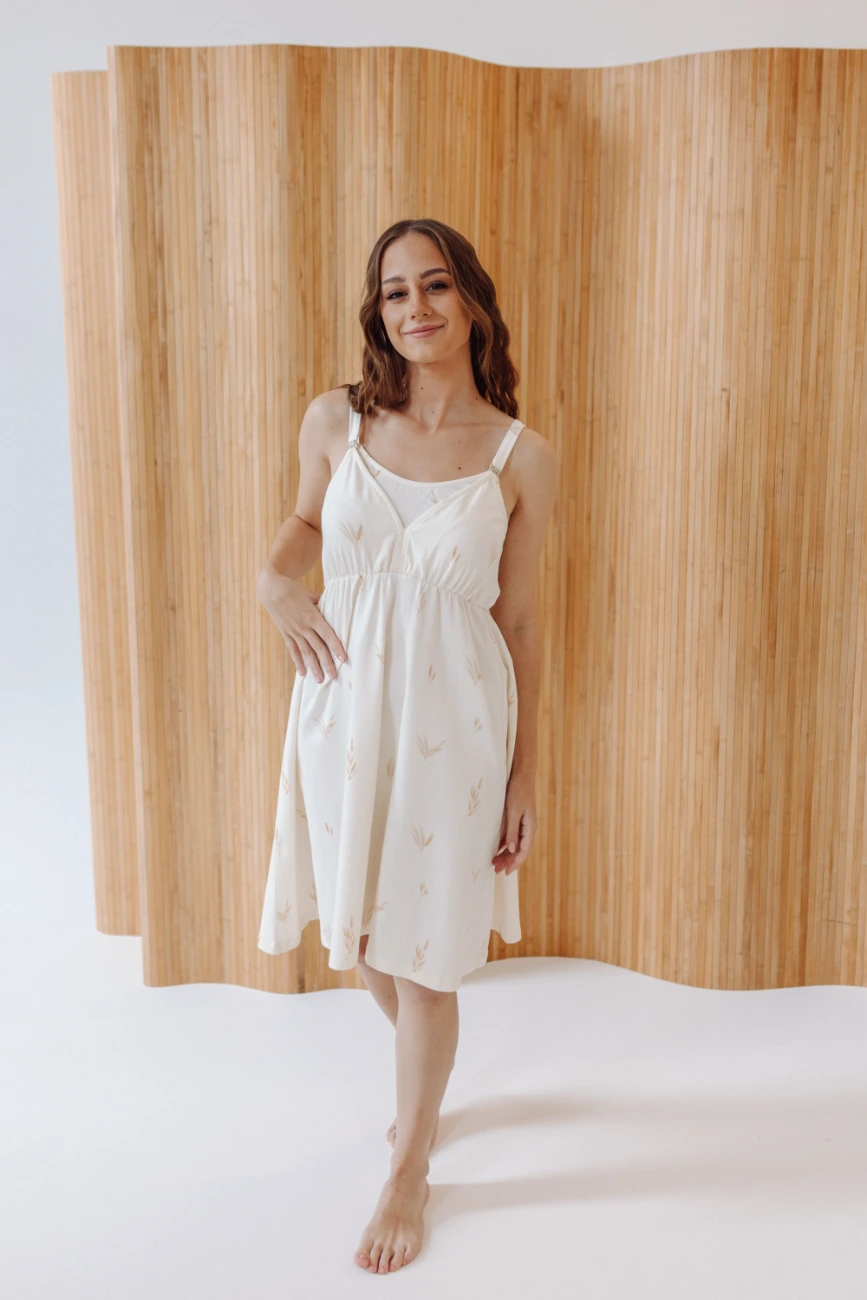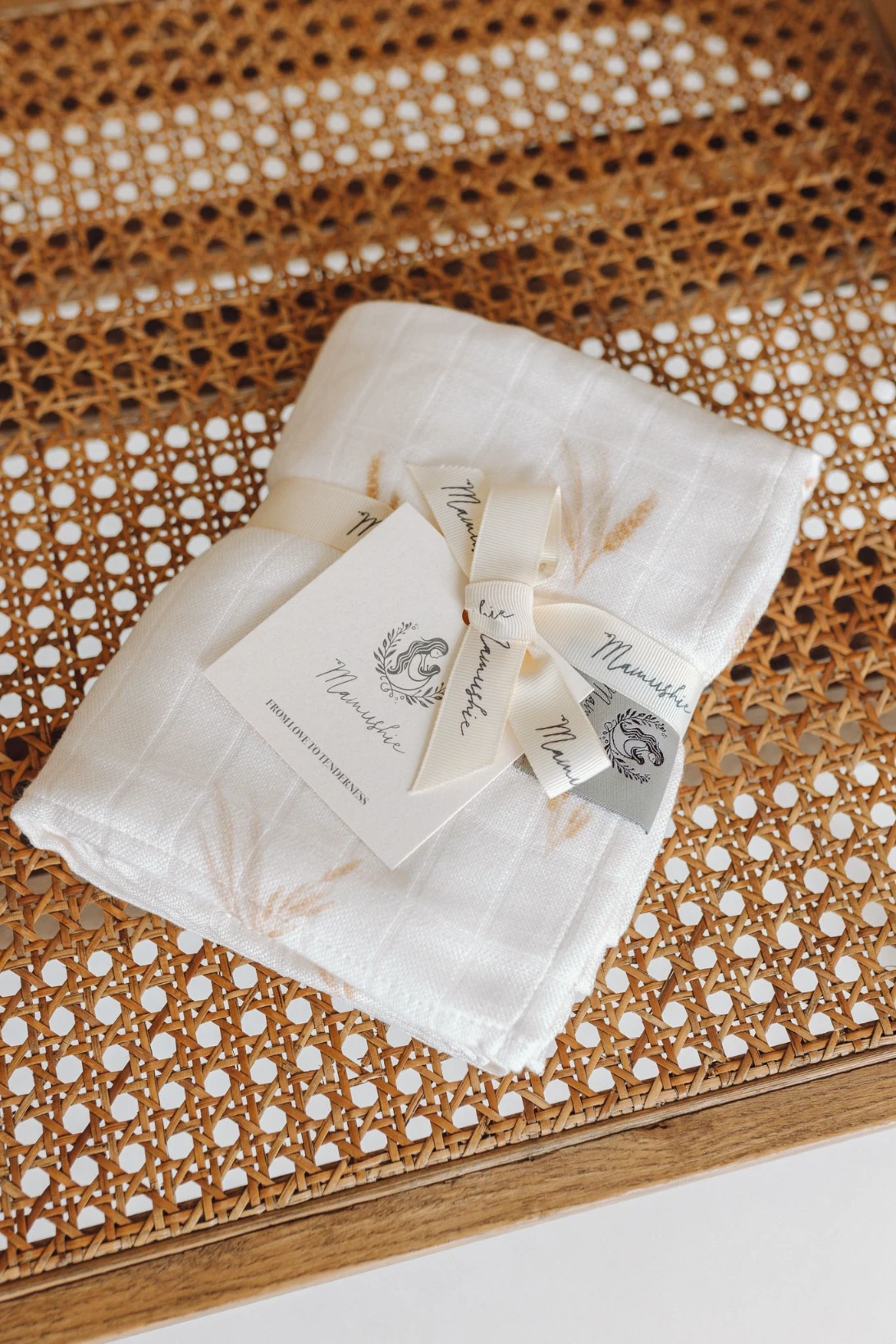 Zestaw dla mamy i dziecka: koszula nocna do karmienia [rozmiar S] i bambusowy otulacz muślinowy 120/120 - Kłosy