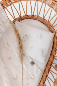 Zestaw do gondoli i kosza Mojżesza: podusia bambusowa i otulacz muślinowy Kłosy 120/120 - Królicza Wioska